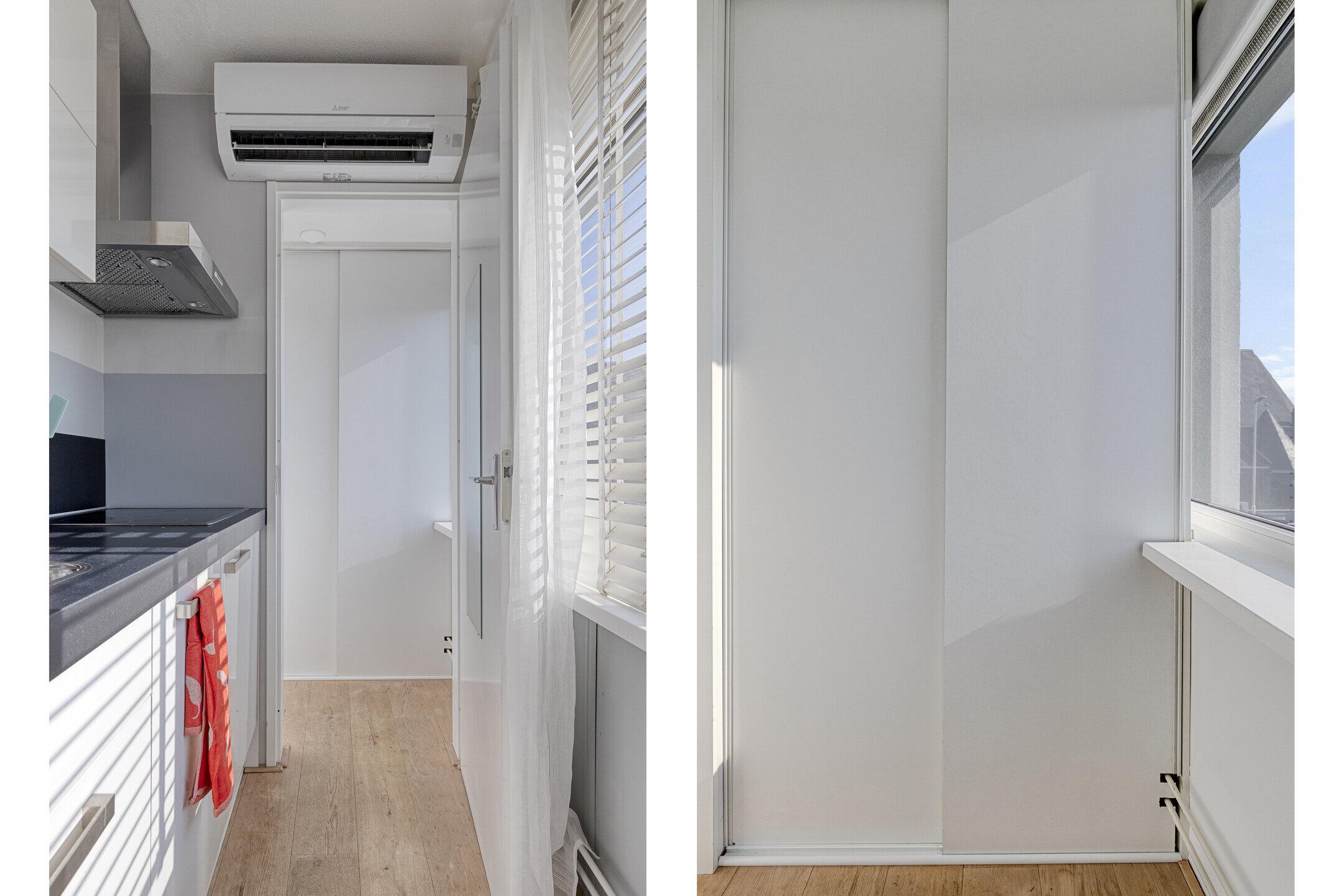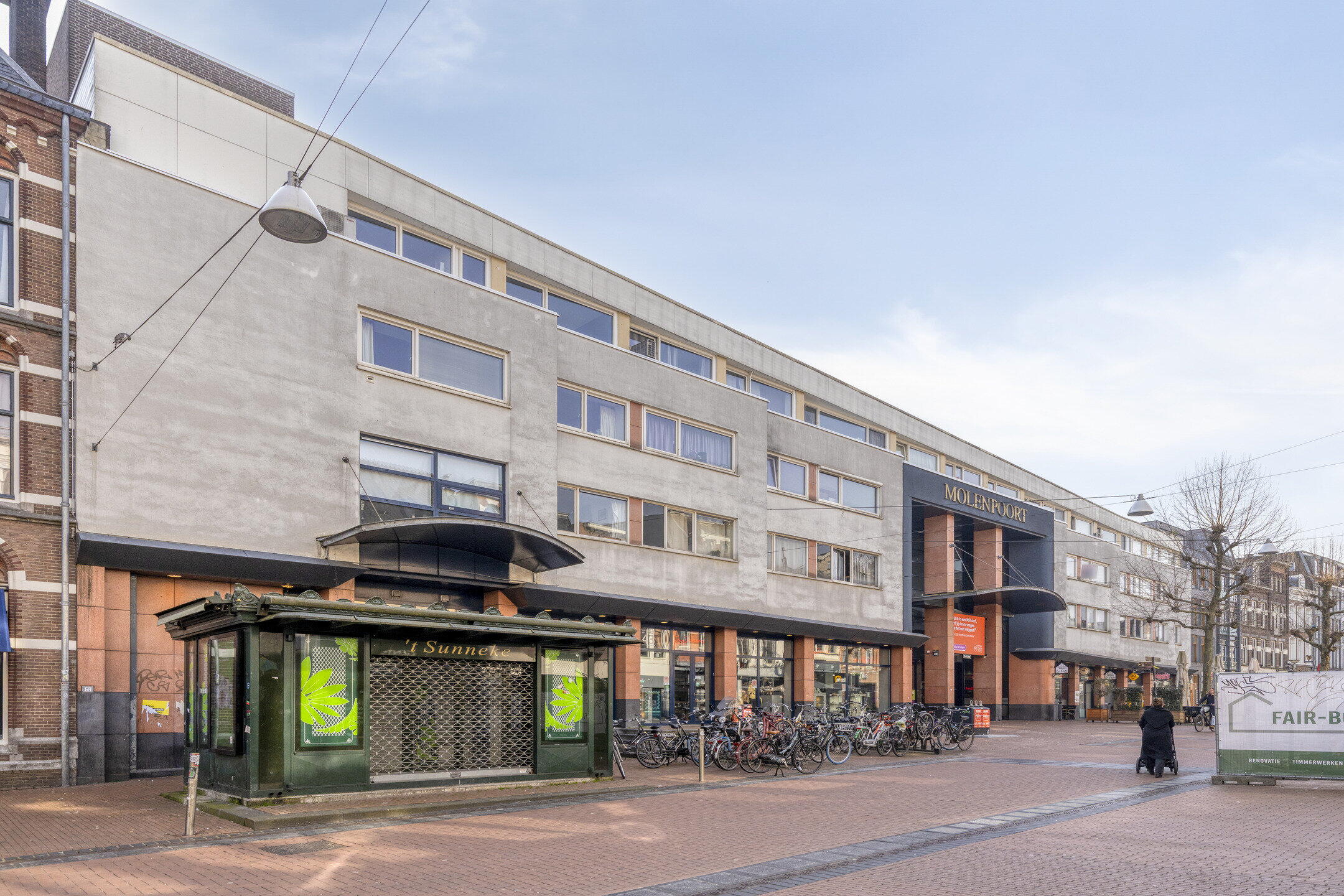 De entree van dit appartement bereik je via de inpandige galerij en eenmaal binnen kijk je uit over het parkeerdek van de Molenpoort passage. Er valt altijd wel iets te zien! Het appartement is in 2009 gerealiseerd in een bestaand complex. Dat betekent dat alle infra van leidingen, verwarming etc. destijds nieuw is aangelegd.